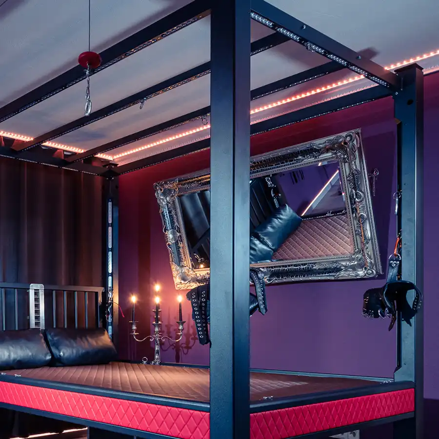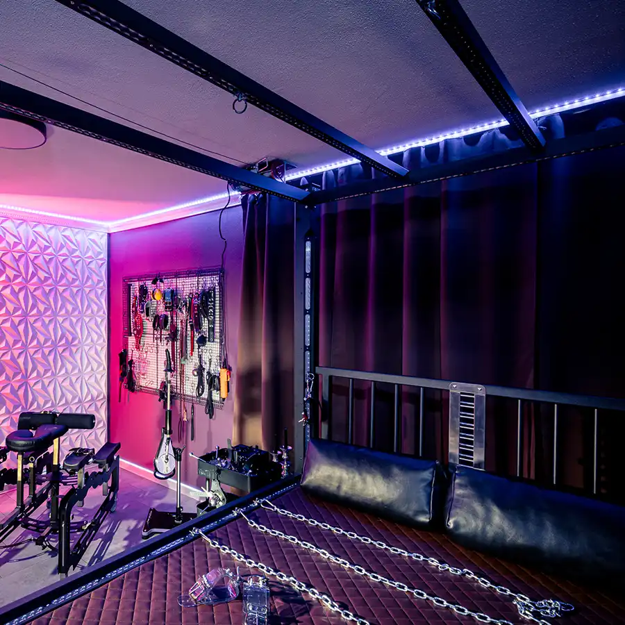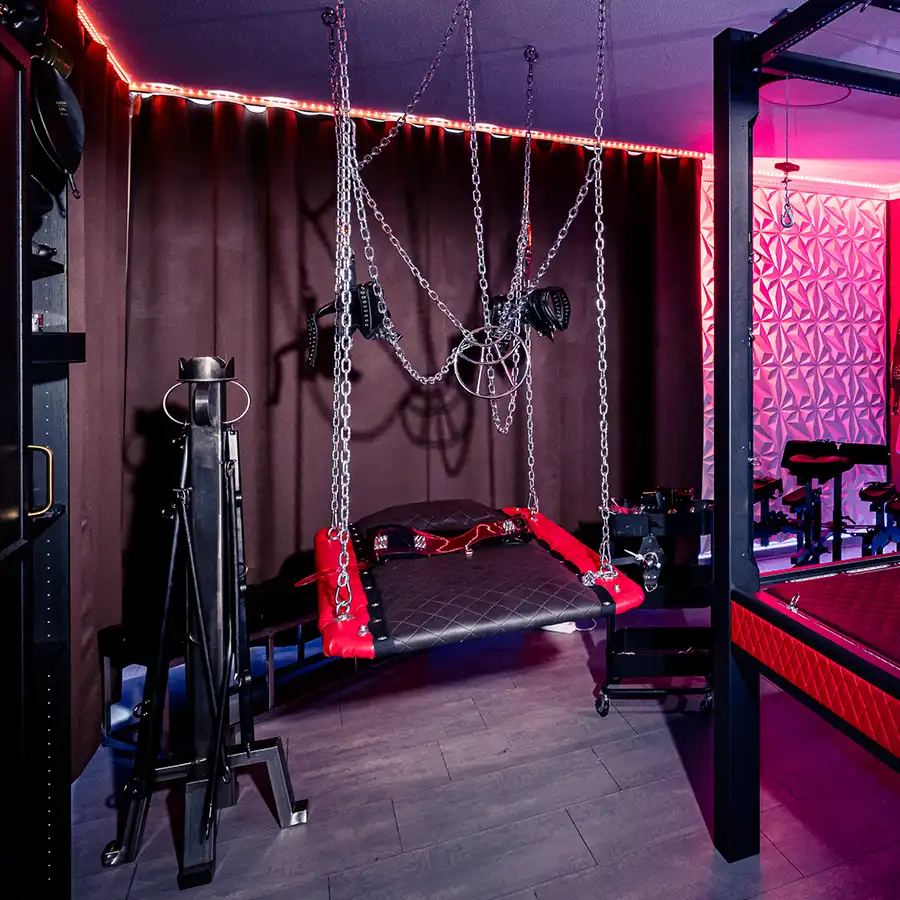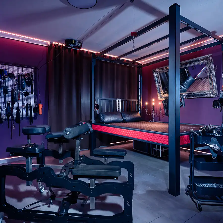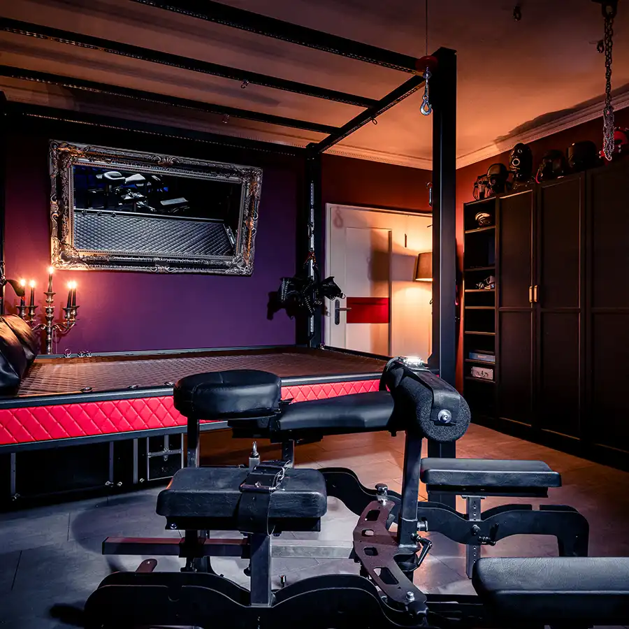 In meinem Studio erwartet Dich eine Vielfalt an Ausstattung: BDSM-Bett, Strafbock, Fickschaukel, Fickmaschine und Peitschen in verschiedenen Varianten. Hier kannst Du Deine Fantasien ausleben, von sanften Berührungen bis zu intensiven Spielen. Sicherheit, Vertrauen und Lust verschmelzen zu einem einzigartigen Erlebnis.
