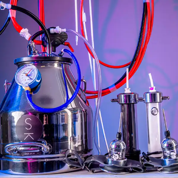 Der „Milker“ von Serious Kit ist ein Gerät, das speziell entwickelt wurde, um eine intensive, mechanische Stimulation zu bieten. Es nutzt Vakuum- und Saugmechanismen, um einen rhythmischen, gleichmäßigen Druck auf den Körper auszuüben, was zu einer besonderen Erfahrung der Erregung und Entleerung führt. Der Milker kann auf unterschiedliche Weise verwendet werden, um das Empfinden von Lust und Hingabe zu intensivieren.